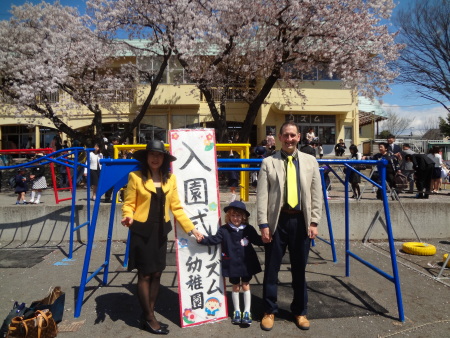 リズム幼稚園 入園式 リズム幼稚園の入園式が、2014年の4月5日でした。 ジュリアンのお誕生日です。ジュリアンは、元気にセレモニ-に参加できました。うれしかったです。 |
