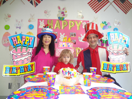 バースディー パーティー 2014年の4月5日 で、ジュリアンは4才です。彼の身長は、 107センチです。 体重は、16キロです。 靴のサイズは16です。 ロブと、毎日英語でお話をしていますので、 ぺらぺらです。 運動、音楽、ダンスが大好きです。 |